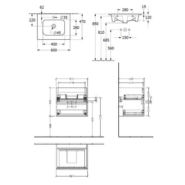Villeroy & Boch Horizon Vanity 600W – 2 Drawers